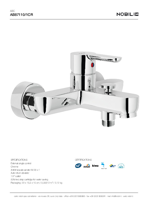 | 41605 | AB87110/1CR | Mitigeur bain/douche ABC | Chrome | Mural |