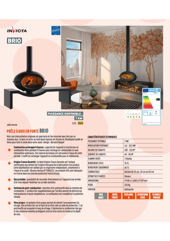 | 73570 | P648124 | Poêle à bois Brio sur banc |