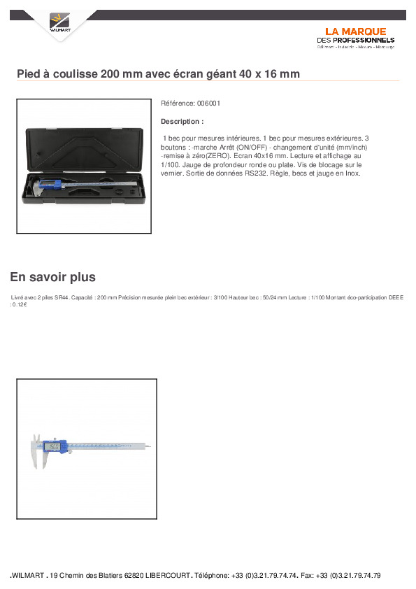 | 74932 | 006001 | PIED A COULISSE INOX DIGITAL 200 MM |